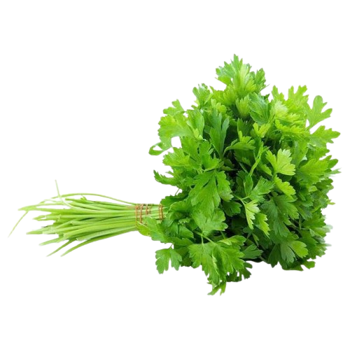 Fresh coriander leaf, hygienically packed, among farm-fresh vegetables. 100g quantity.